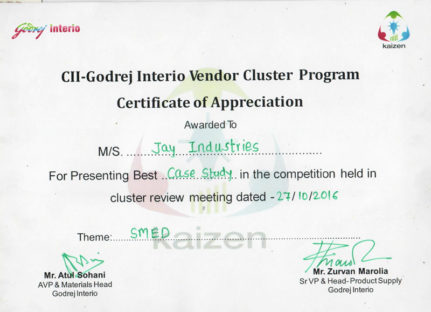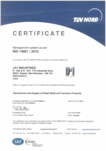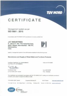 Jay Industries was established in November 2003 with an intention to supply quality sheet metal products catering to the needs of OEM. Today, we are an SME unit with Manufacturing Setup facility measuring about 32,000 square feet space in Rabale, Navi Mumbai. We manufacture various sizes of sheet Metal Furniture for Offices & Godowns, Banks etc, and have pioneered high-density mobile storage systems providing cost-efficient storage solutions using less space. Our products include all kinds of mobile and stationary shelving units, filing systems, industrial mobile carriages, art racks, moveable pull – out storage panels, accessories and cabinets for multimedia storage, museum storage, personal locker units, mobile lockers, pedestal, vertical filing cabinet, book racks, Banking Kiosk , health care furniture and much more.